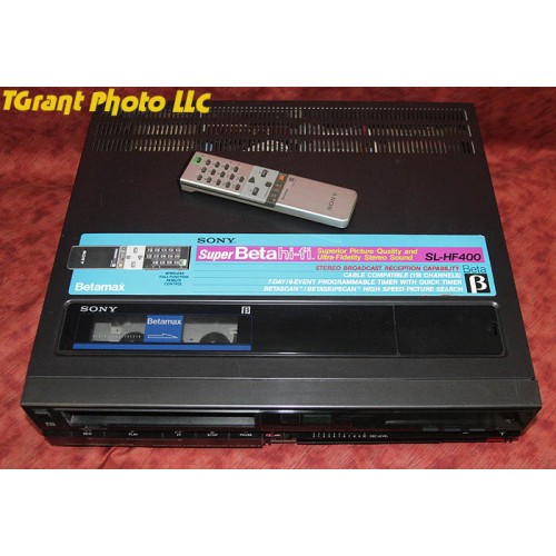 Sony SL HF-400 Betamax Player, used, in very good working condition. Repaired, cleaned and tested. Comes with original remote control, plus a reprint of the original instructions. (This is Beta format, will not play VHS tapes).